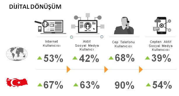 Nielsen Genel Müdürü Didem Şekerel Erdoğan’ın paylaştığı bilgilere göre, “Global nüfusun internet kullanım oranı %53 iken, Türkiye’de bu oran %67. Yine aktif sosyal medya kullanımı dünya ortalamasında %42 iken, Türkiye’de %63. Aynı şekilde, Türkiye mobilde de dünya ortalamasının üzerinde. Cep telefonu kullanıcısı oranı dünya genelinde %68 iken, Türkiye’de %90. Bunun sonucu olarak da cepten aktif sosyal medya kullanımı oranımız (%54), dünya ortalamasına (%39) göre oldukça farklılaşmakta. Kullanıcı sayısı olarak bakıldığında, Türkiye’deki sosyal medya penetrasyonun global ortalamadan daha yüksek olduğunu biliyoruz. Nitekim, ana sosyal medya platformlarındaki kullanıcı sayısı sıralamamız, dünya nüfus sıralamasındaki yerimizin çok üzerinde. Dünya nüfus sıralamasında Türkiye 18. Sırada yer alırken, örneğin Facebook kullanıcı sayısı sıralamasında 9. sırada, Instagram kullanıcısı sırasında ise 5. sırada yer almaktayız. Yalnızca kullanıcı sayısı değil, aynı zamanda sosyal medyada geçirilen ortalama süre de oldukça yüksek. Türk tüketicisi sosyal medyada, ABD ve Çin’le kıyaslandığında yaklaşık yüzde 50 daha fazla zaman geçirmekte.
